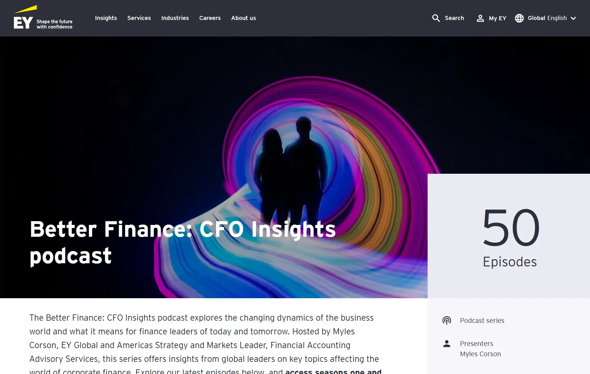 Better Finance: CFO Insights: This EY-hosted podcast gives CFOs a front-row seat to how top finance leaders are dealing with tech shifts, regulatory pressure, and value creation strategy.
