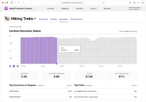 Focus on subscriber growth, watch time, and revenue signals your exec team recognizes. Apple Podcasts surfaces listener and completion analytics, which show how well your episodes hold attention.