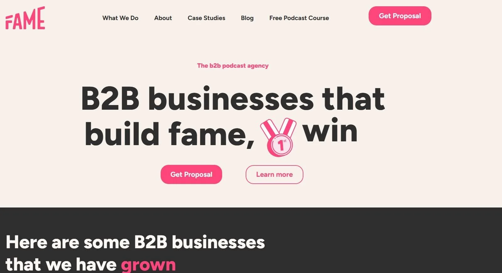 Fame is a B2B podcast agency that helps founders, executives, and marketing teams turn podcasts into strategic marketing and business development channels. The company focuses on building podcasts that drive measurable outcomes such as brand authority, audience growth, partnerships, and inbound opportunities.