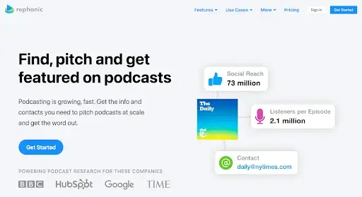 Rephonic is best known for its podcast database and 3D audience graph that helps marketers discover shows and analyze overlap between audiences. While not a full hosting or analytics provider, it’s widely used by B2B teams for guest booking, audience insights, and competitive benchmarking. It's best at helping brands understand where their target ICP is already listening, which can inform sponsorship and content strategies.