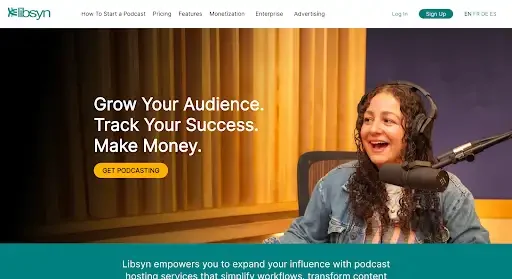 Known for serving both independent creators and enterprise podcasters, it brings everything you need in one place. This includes hosting, IAB-certified analytics, distribution to all major directories, and monetization options through advertising and subscriptions.