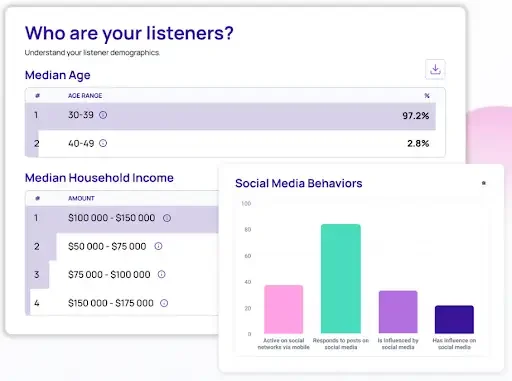 Plus Plan – $44/month (billed annually): Adds advanced listener demographics such as income, hobbies, social media habits, and even pet ownership.
