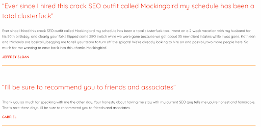 Mockingbird Marketing, founded in 2013 and based in Seattle, serves attorneys with tailored SEO, PPC (including Bing Ads), web design, reputation, content, and reporting services. They emphasize transparency, law-firm-specific strategy, and always deliver the final site so you own it.