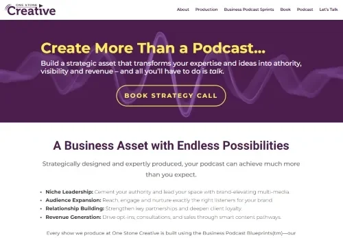 One Stone Creative: Backs every episode with a measurable strategy using their Business Podcast Blueprints™, so your content leads to real outcomes.