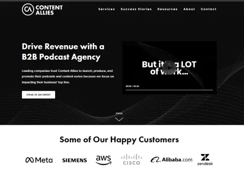 On the other hand, if you look at the industries they serve, you’ll only see small businesses and personal brands. By comparison, Content Allies can help startups as well as create enterprise podcasts.